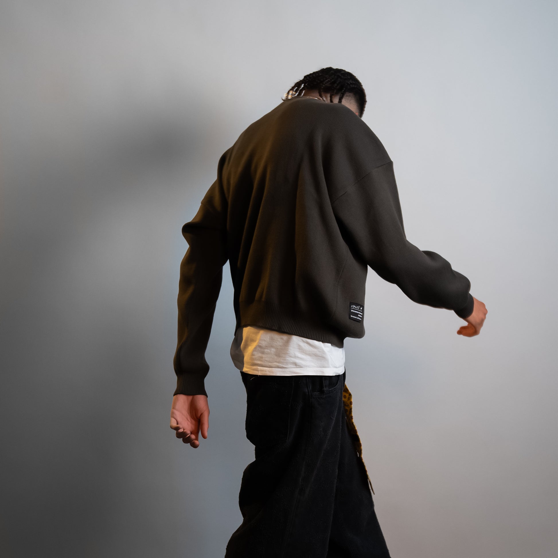 The LEAF KNIT CREW is a simple, boxy, oversized and slightly cropped crew neck with a focus on its special two-tone Egyptian Wool Yarn. Finished with special hand-stitched embroidery at the wearer's chest.