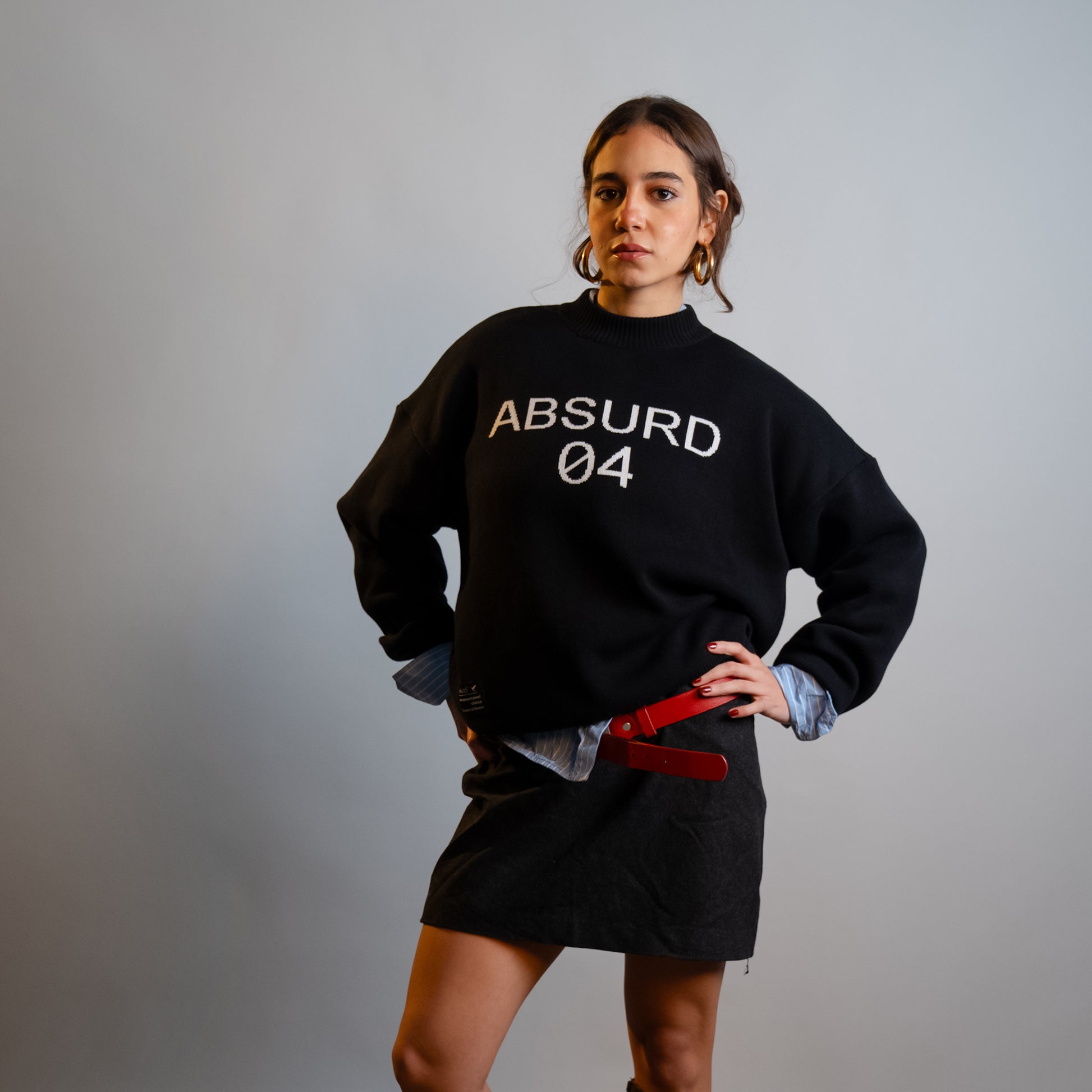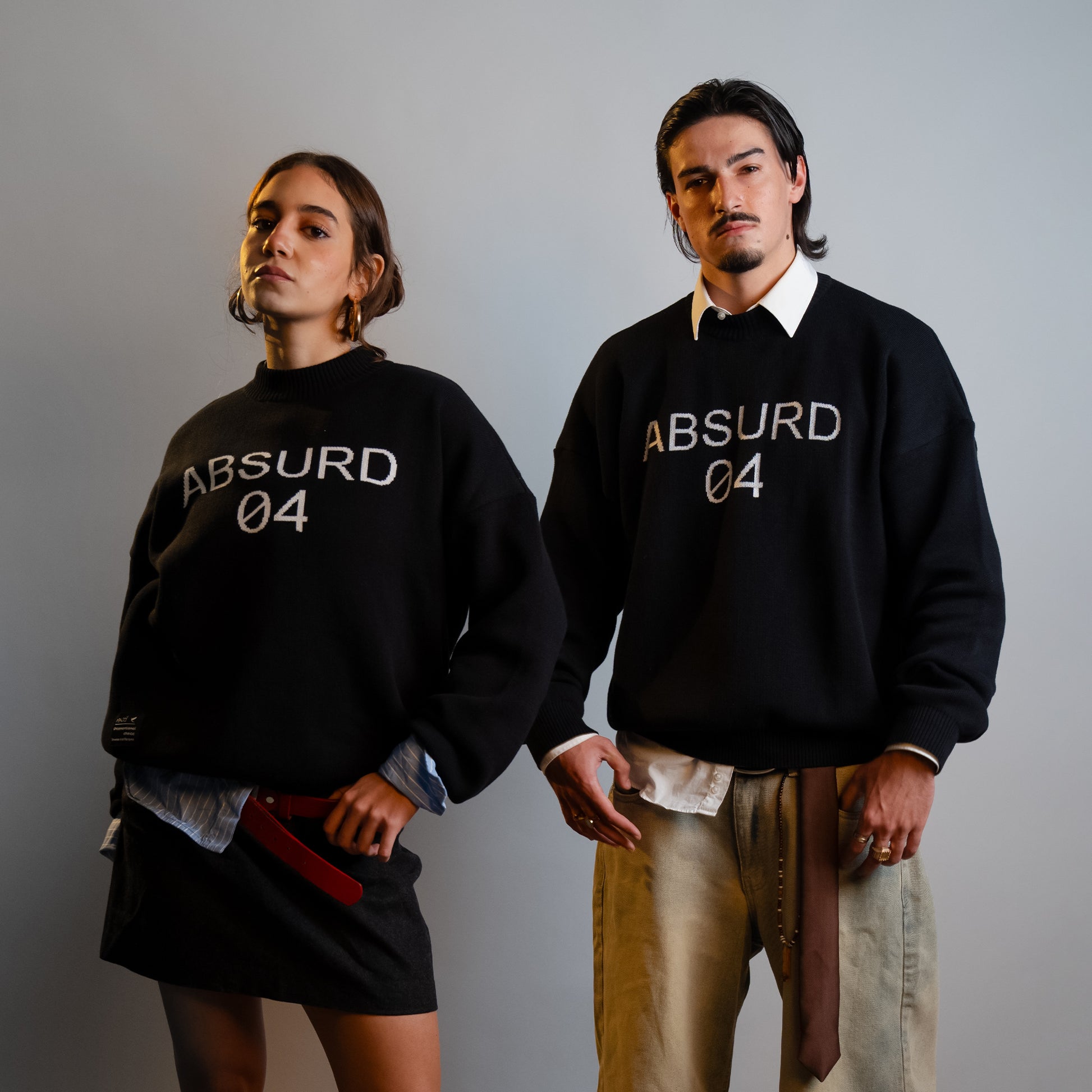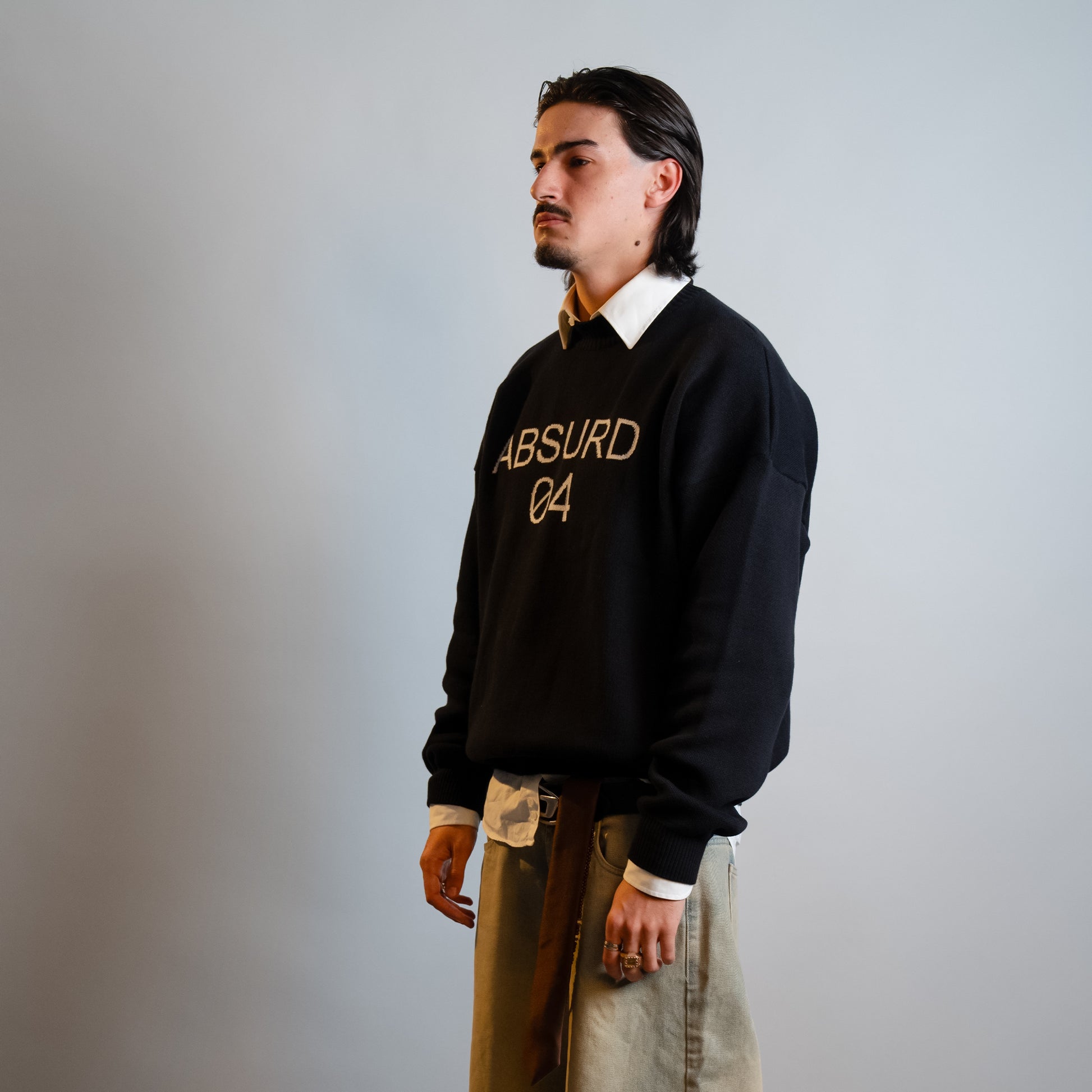 The NOIR KNIT CREW is a simple, boxy, oversized and slightly cropped crew neck with a focus on its special two-tone Egyptian Wool Yarn. Finished with special hand-stitched embroidery at the wearer's chest.