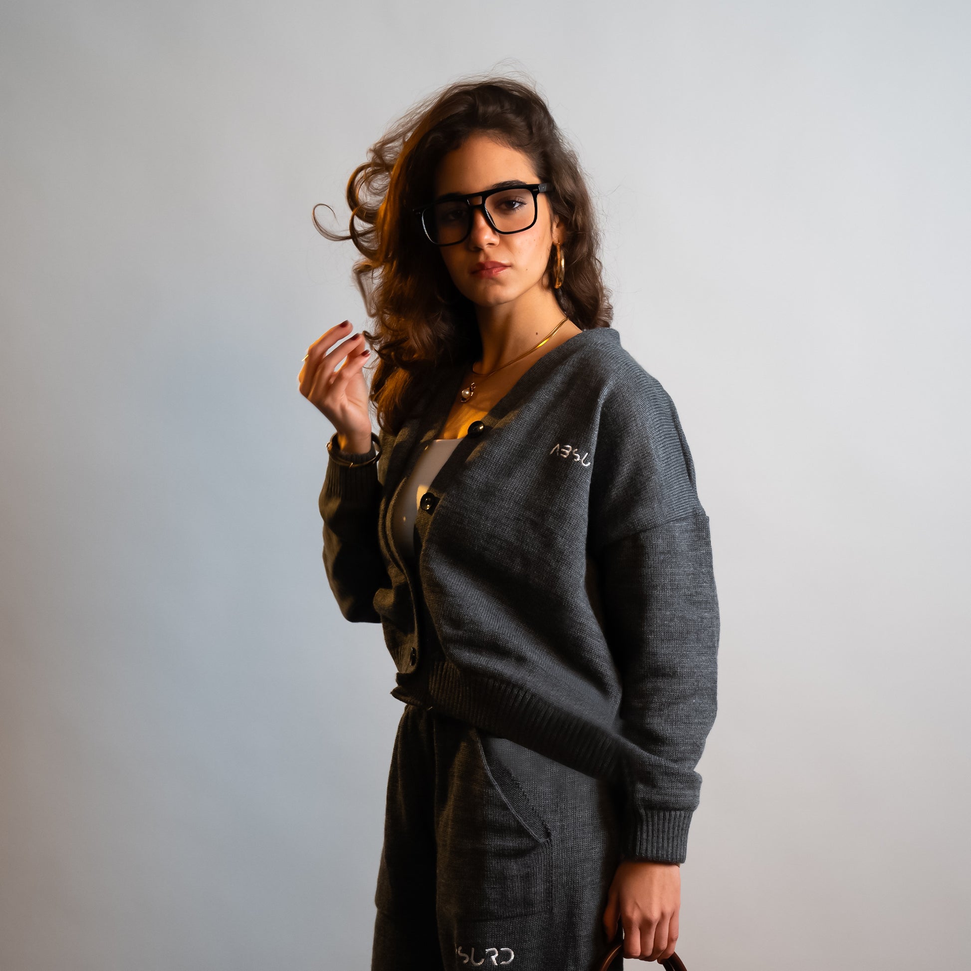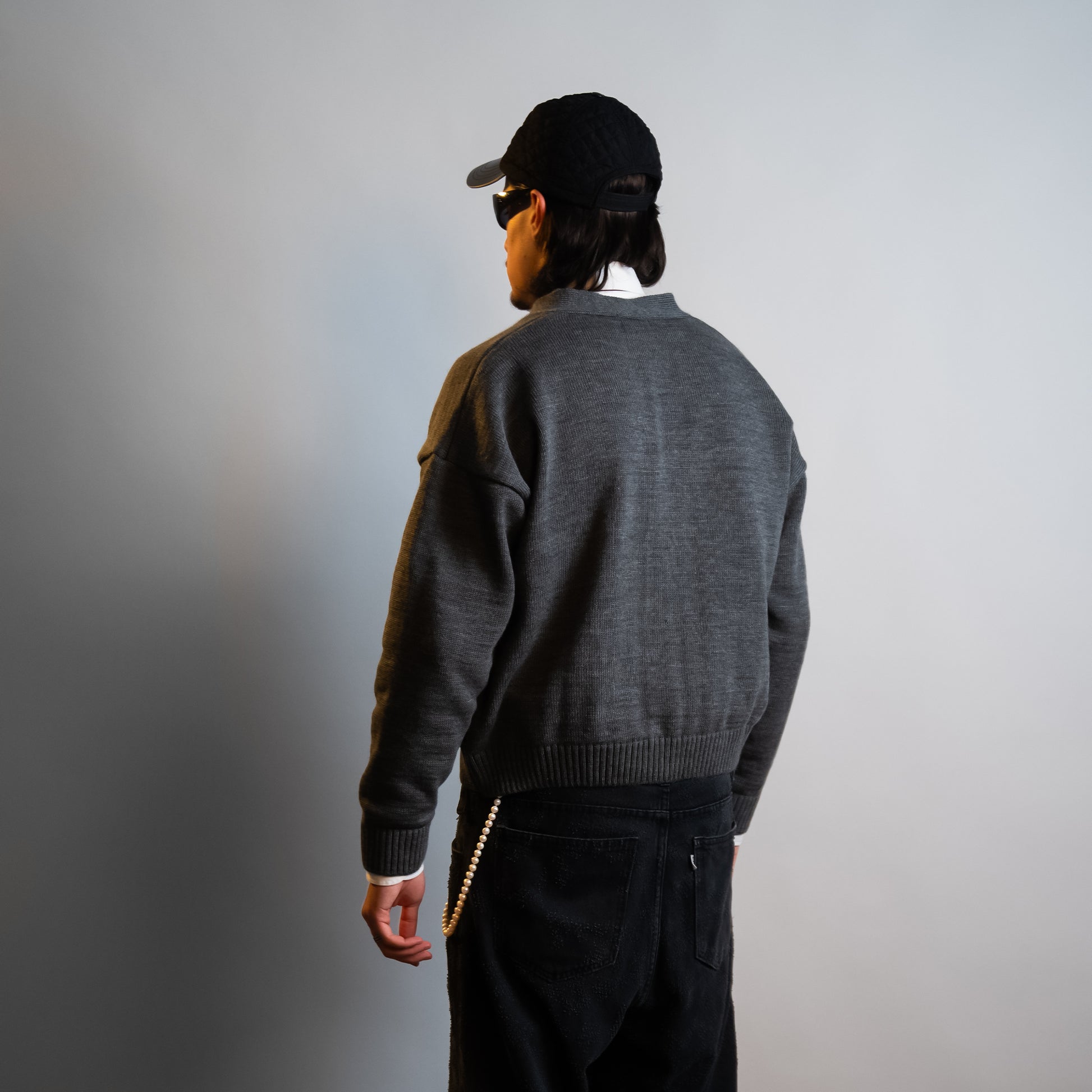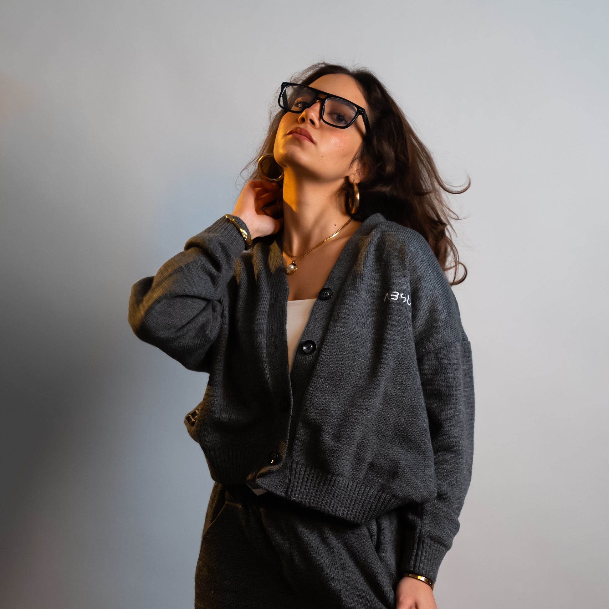The STONE KNIT CARDIGAN is a simple, boxy, slightly cropped cardigan with a focus on its special two-tone Egyptian Wool Yarn. Finished with special hand-stitched embroidery at the wearer's chest.